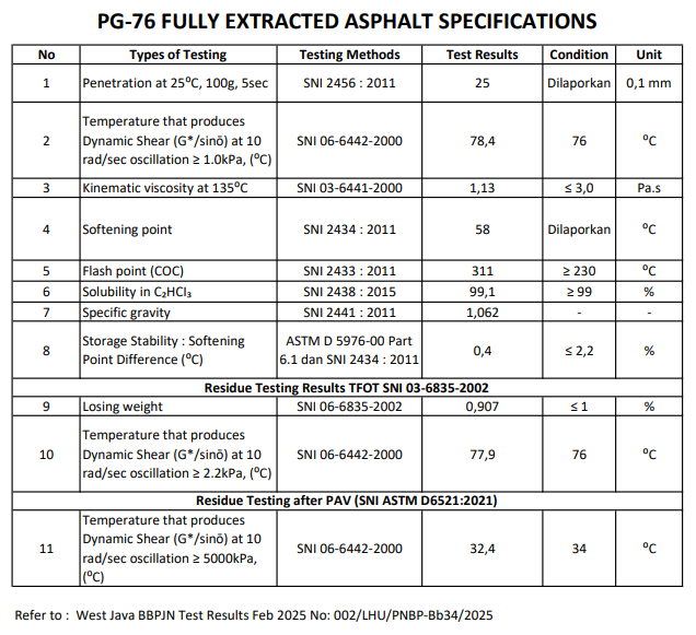 Buton Asphalt PG-76 is a modified asphalt suitable for use on highways with heavy loads and dense traffic. Known for its high durability, PG-76 offers optimal performance across various weather conditions.